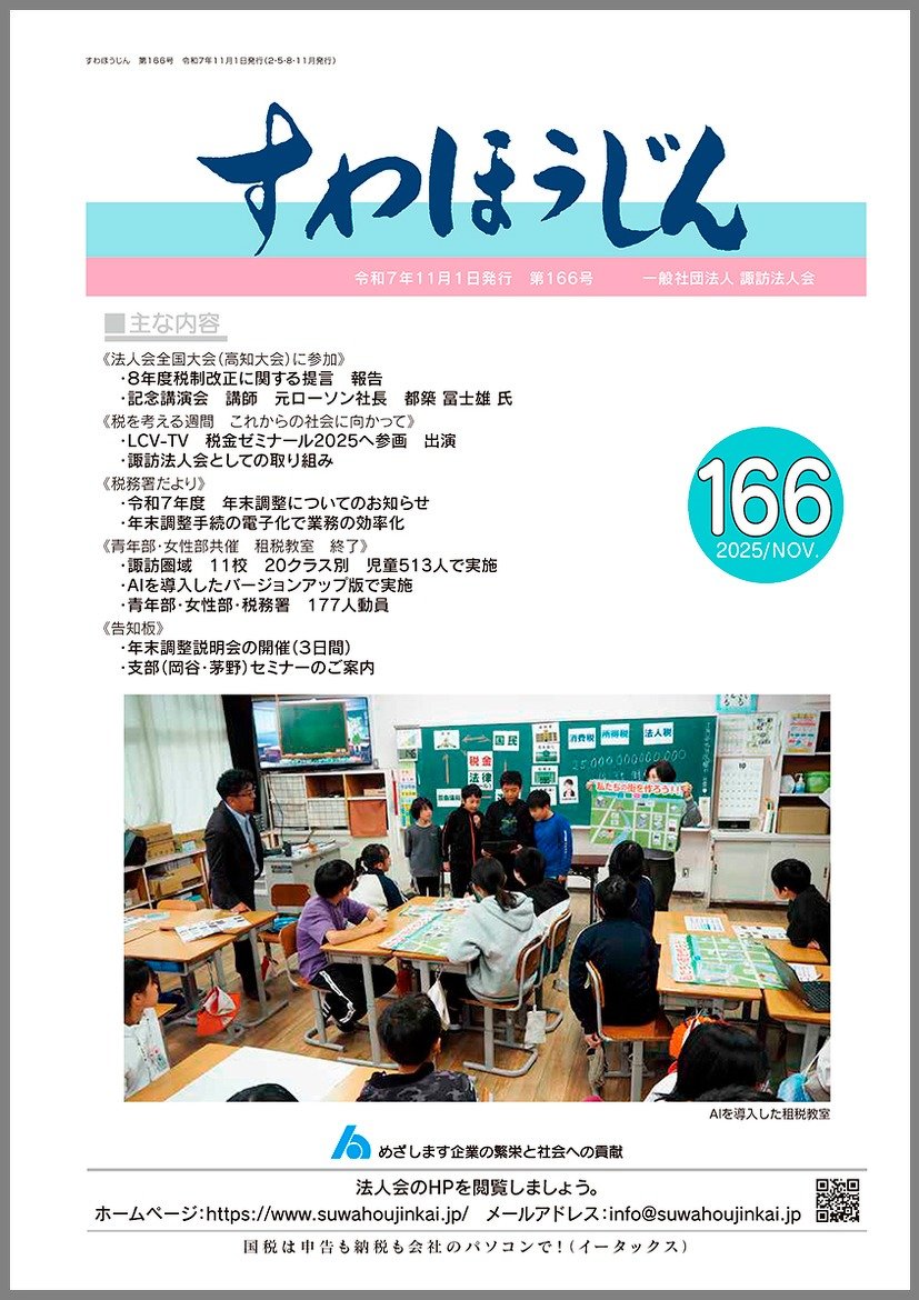 - 諏訪法人会の会報誌「すわほうじん」・「ほうじん」の発行(年4回)